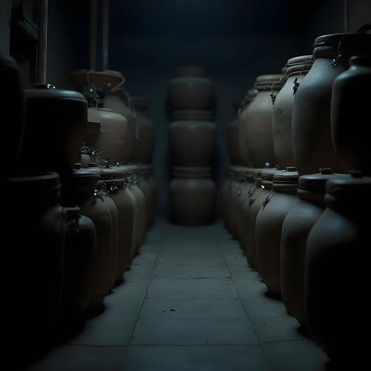 These jars are placed in a dark room (to prevent light exposure degrading chlorophyll) for 3 years, to create a gently sweet, balanced, and velvety matcha.