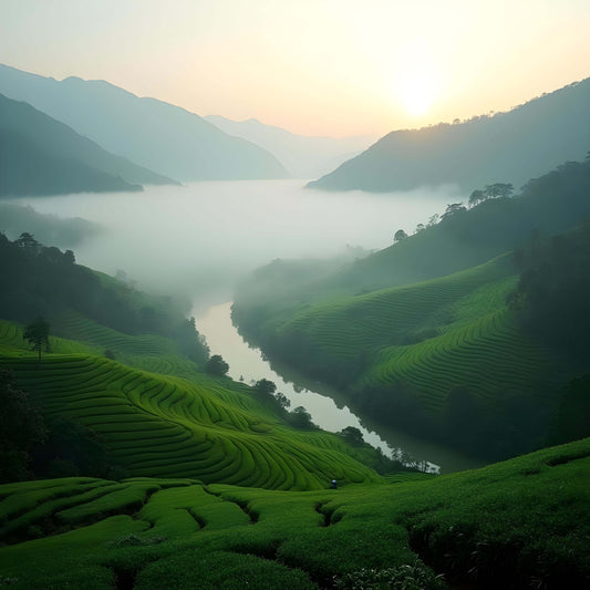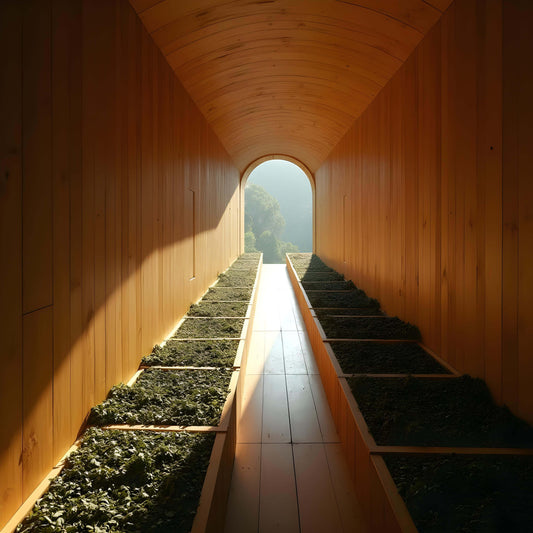 Winter frosts stress the plants, concentrating amino acids like L-theanine, while summer fog diffuses sunlight, slowing photosynthesis and amplifying chlorophyll production.